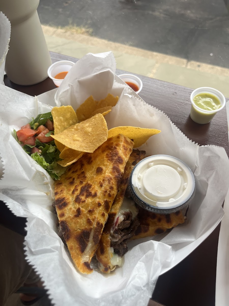 A taqueria with a pretty decent selection of tacos with pretty food prices. This place advertise halal prepared meals. Seats are pretty limited inside but there's decent seating at the outdoor patio. Parking is pretty limited. Al.pastor and the beef birria are good. Carne asada is okay.